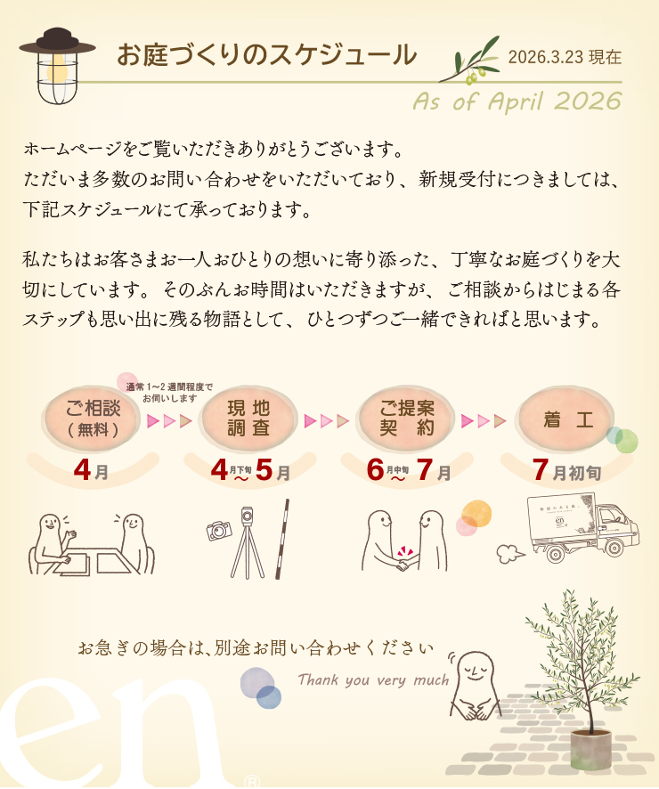 新しいお庭でみなさまとお会いできるイベントも思案中ですので